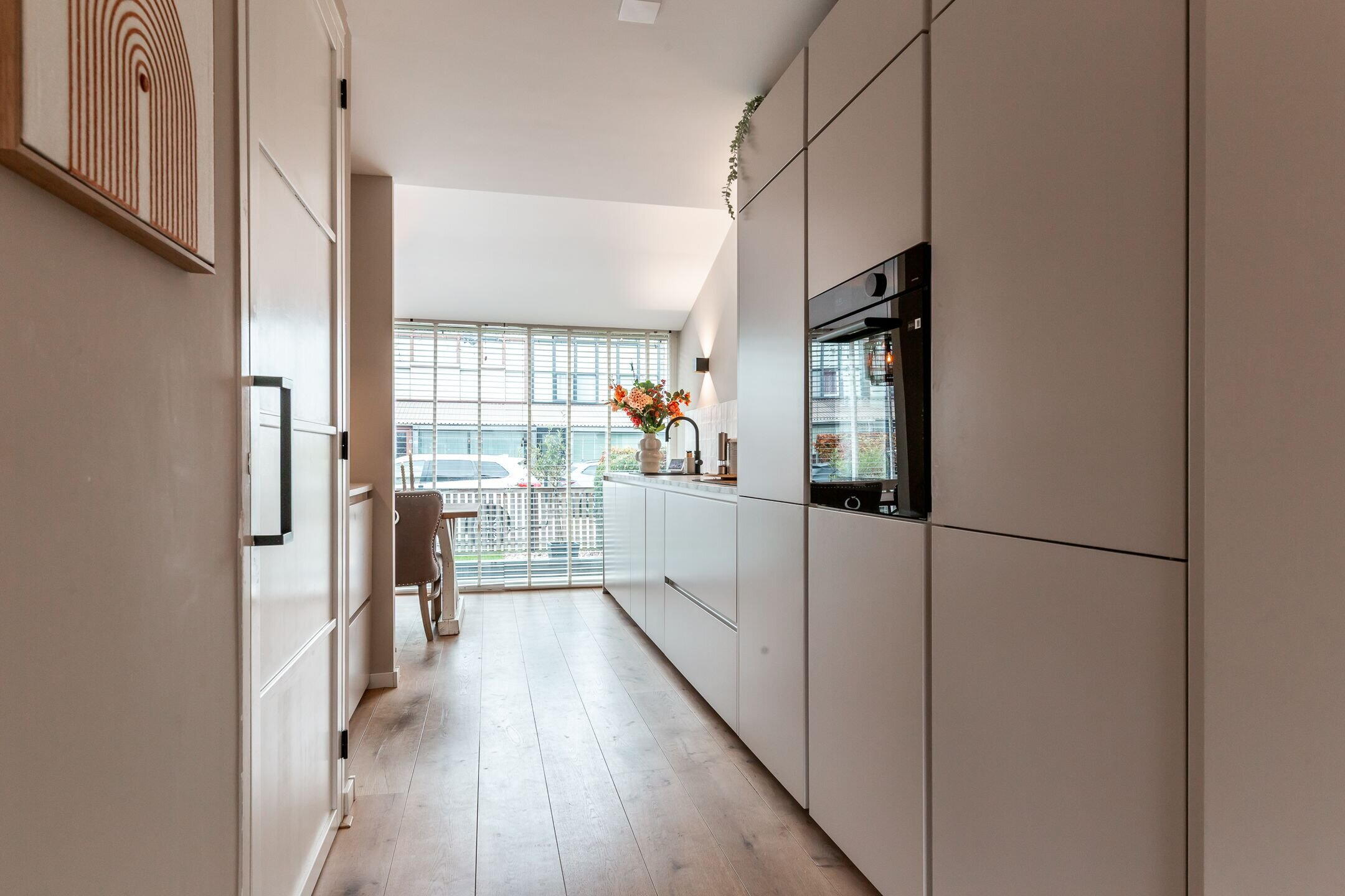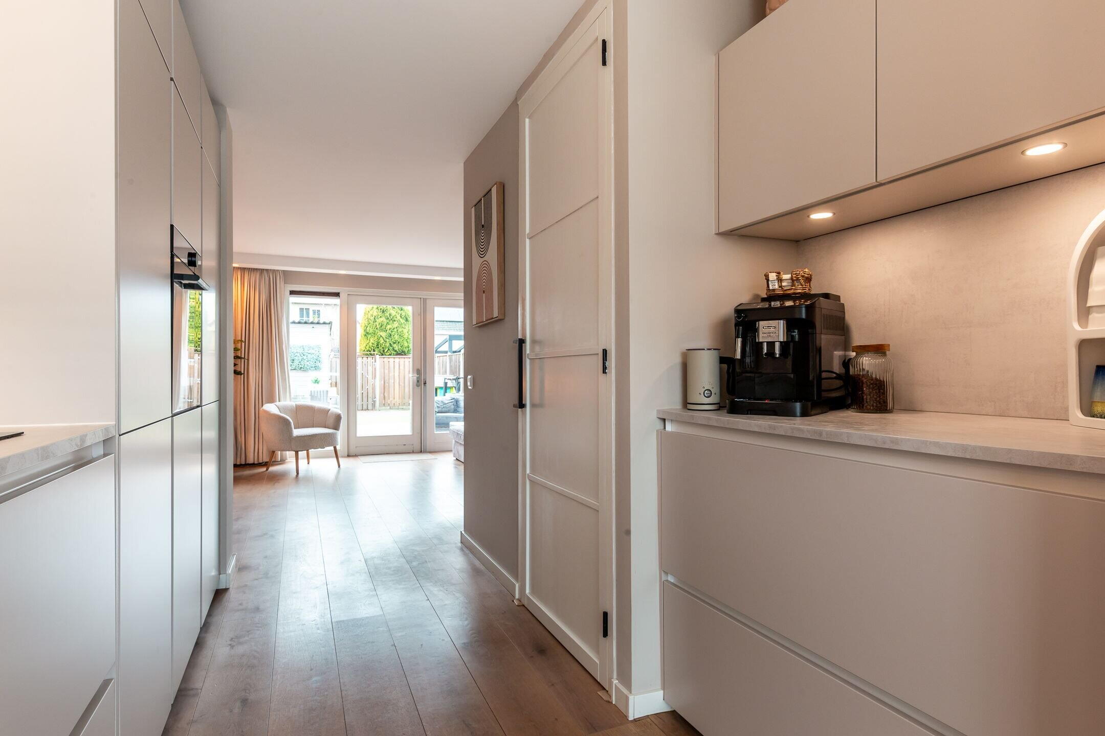 Begane grond: Entree; zeer lichte, straatgerichte voor-serre/eetkamer met meer dan voldoende ruimte voor uw riante eettafel; de in moderne kleurstelling uitgevoerde keuken (november 2023 vernieuwd) welke is voorzien van de navolgende inbouw apparatuur: inductie kookplaat met geïntegreerd afzuigsysteem, combi magnetron/oven, koelkast, vrieskast, Quooker en een volledig geïntegreerde vaatwasser; zeer riante trap/voorraadkast; tuingericht woonkamer van ongeveer 24m² met dubbele openslaande deuren naar de achtertuin; tussenhal met trapopgang naar de verdieping, meterkast en een modern betegeld toilet met fonteintje.