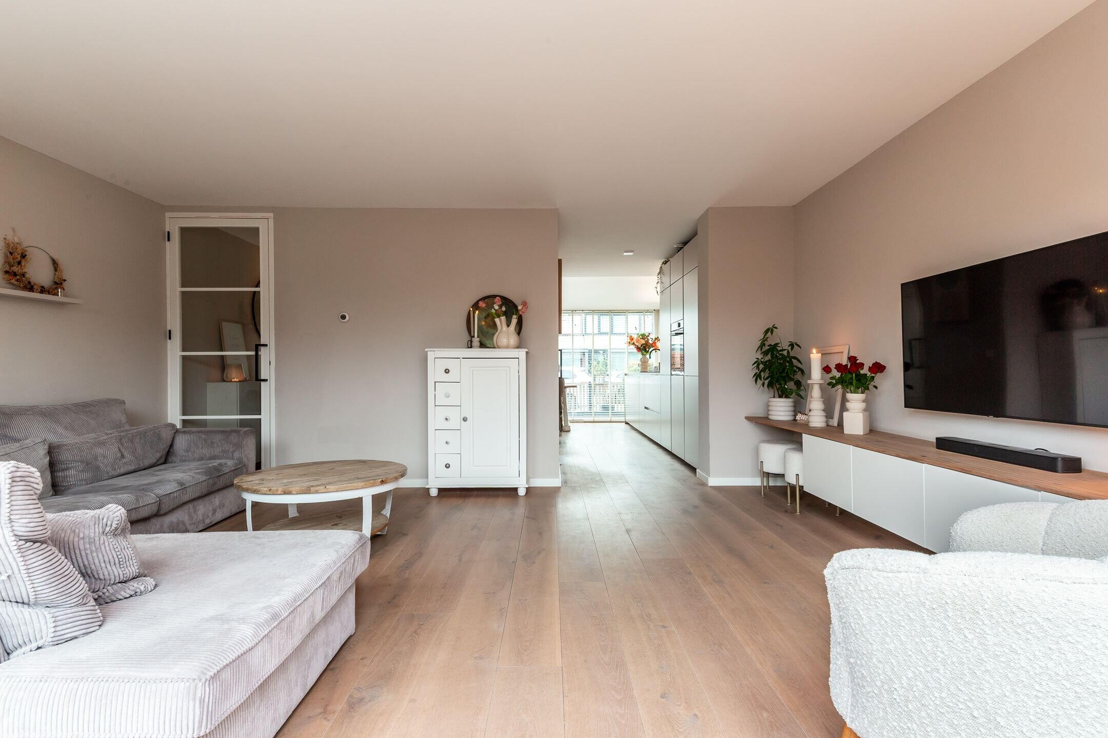 De volledige begane grond verdieping is voorzien van een moderne massief houten vloer.